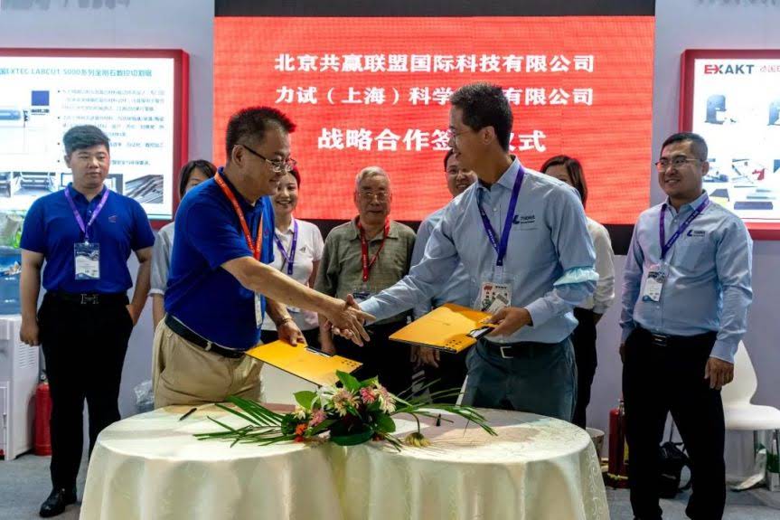 ? ?在此次展會(huì)上,北京共贏聯(lián)盟公司完成了與力試(上海)科學(xué)儀器有限公司的戰(zhàn)略合作簽約儀式。?北京共贏專注于提供適用于力學(xué)性能測(cè)試的先進(jìn)復(fù)合材料矩形樣件批量批次高效加工制樣技術(shù)以及高分子材料特性測(cè)試分析技術(shù)。力試是專業(yè)從事力學(xué)試驗(yàn)設(shè)備技術(shù)研發(fā)、制造、銷售和服務(wù)的高新技術(shù)企業(yè),是國(guó)內(nèi)領(lǐng)先的靜態(tài)和動(dòng)態(tài)力學(xué)測(cè)試整體解決方案供應(yīng)商。雙方有明確的供需合作前景,有共同做大做強(qiáng)的發(fā)展目標(biāo)。?兩家公司此次戰(zhàn)略合作,將形成1+1>2的合力效應(yīng),推動(dòng)北京共贏公司核心業(yè)務(wù)發(fā)展模式的深化落地,同時(shí)促進(jìn)共贏公司在復(fù)材行業(yè)的深入布局與發(fā)展,達(dá)到互惠共贏的發(fā)展局面。